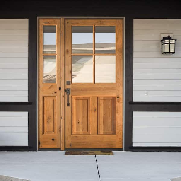 50 in. x 80 in. Alder Right-Hand/Inswing 4-Lite Clear Glass Provincial Stain Wood Prehung Front Door with Left Sidelite