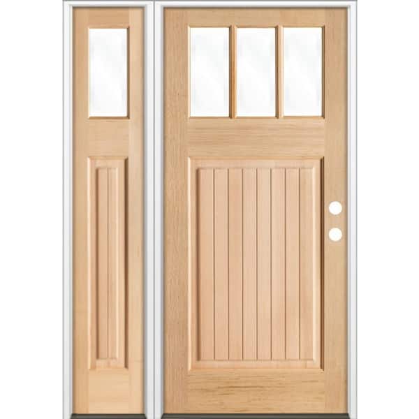 50 in. x 80 in. Craftsman 3-LIte Clear Glass VG Unfinished Left Hand Hemlock Wood Prehung Front Door w/LSL