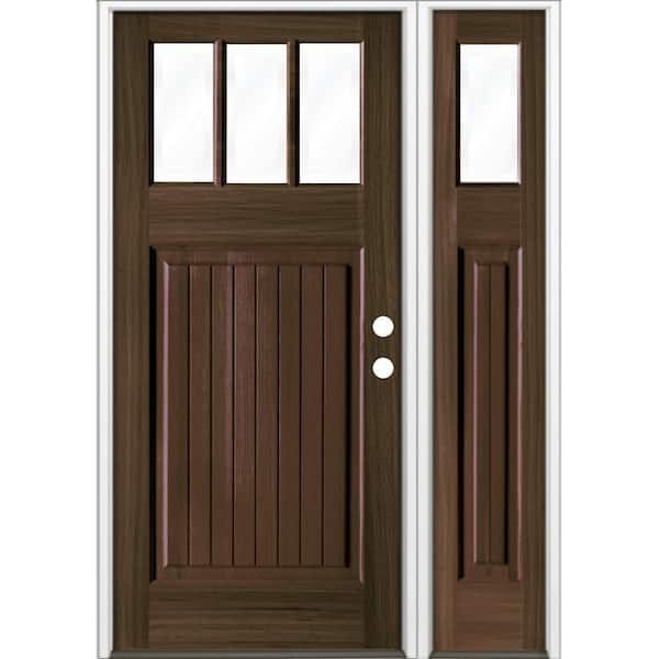 50 in. x 80 in. Craftsman 3-Lite Clear Glass VG Black Stain Left-Hand Hemlock Wood Prehung Front Door w/RSL