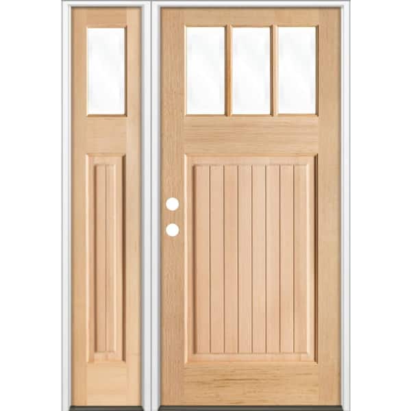 50 in. x 80 in. Craftsman 3-Lite Clear Glass VG Unfinished Right Hand Hemlock Wood Prehung Front Door w/LSL