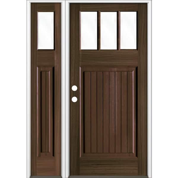 50 in. x 80 in. Craftsman 3 Lite VG Black Stain Right-Hand/Inswing Hemlock Wood Prehung Front Door w/LSL