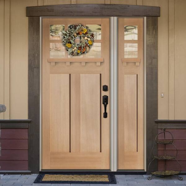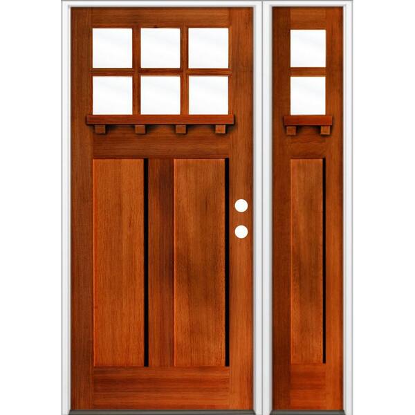 50 in. x 80 in. Craftsman 6-Lite Left-Hand/Inswing Clear Glass Red Chestnut Stain Hemlock Wood Prehung Front Door w/RSL