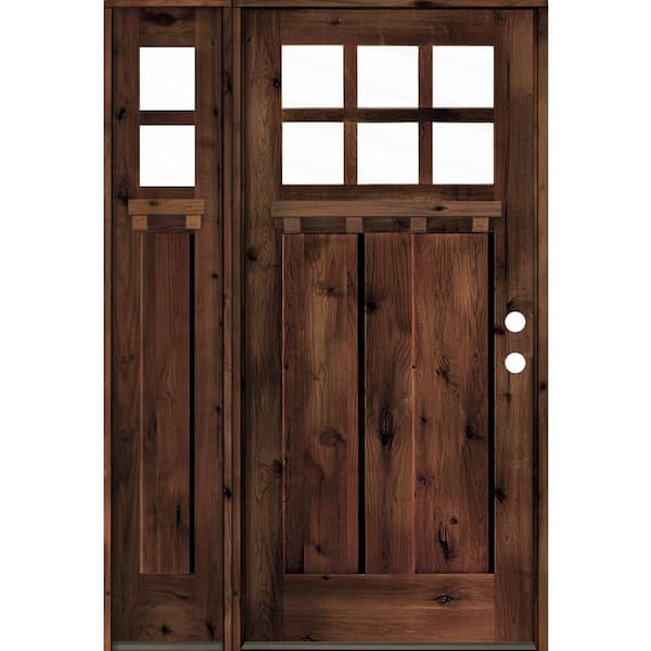 50 in. x 80 in. Craftsman Alder 6 Lite Left-Hand Clear Glass Red Mahogany Stain Wood Prehung Front Door/Left Sidelite DS