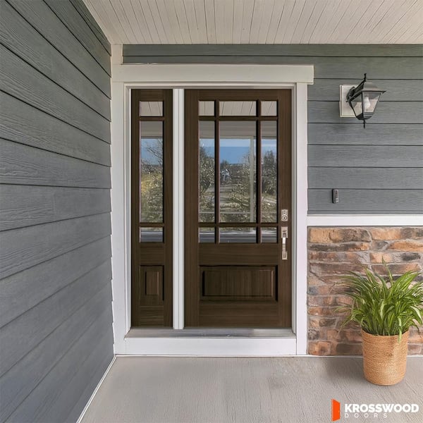 50 in. x 80 in. Craftsman Prairie 3/4 Lite Clear Glass Black Stain Left-Hand/Inswing Hemlock Prehung Front Door w/ LSL