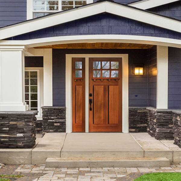50 in. x 80 in. Craftsman Right Hand 6-Lite Clear Stain Hemlock Prehung Front Door Left Sidelite