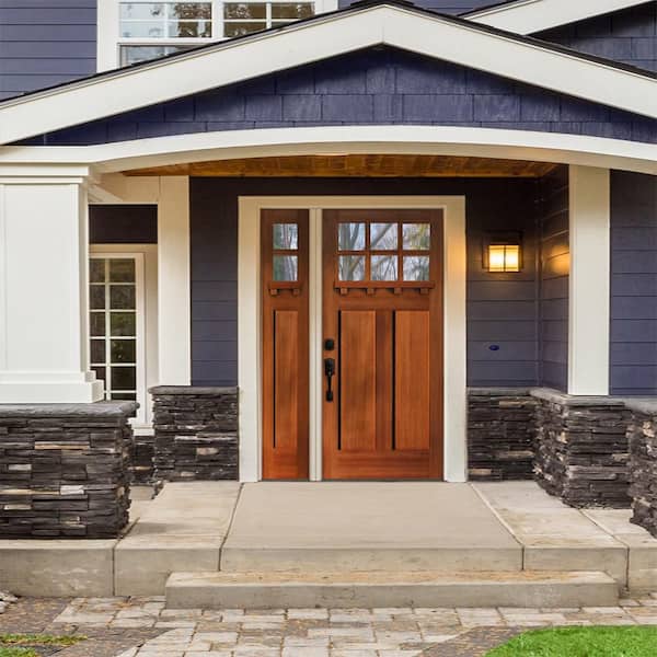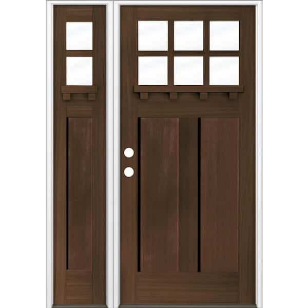 50 in. x 80 in. Craftsman Right-Hand/Inswing Clear Glass Black Stain Hemlock Wood Prehung Front Door Left Sidelite
