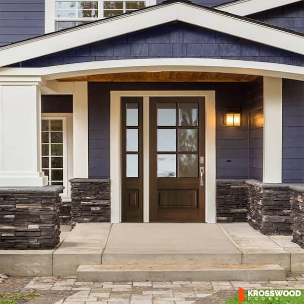 50 in. x 80 in. Farmhouse 3/4 Lite Clear Glass Black Stain Left-Hand/Inswing Hemlock Prehung Front Door w/LSL