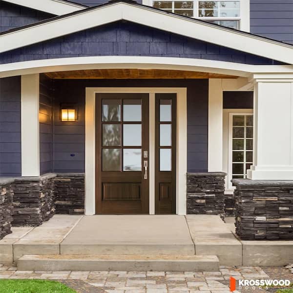50 in. x 80 in. Farmhouse 3/4 Lite Clear Glass Black Stain Left-Hand/Inswing Hemlock Prehung Front Door w/ RSL