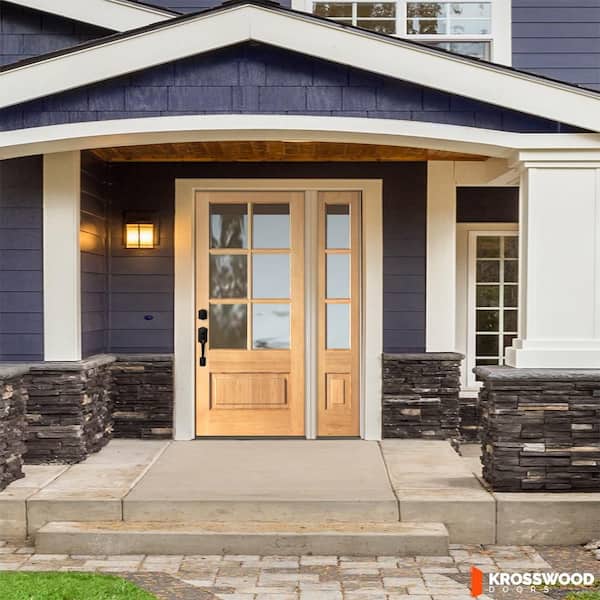 50 in. x 80 in. Farmhouse 3/4 Lite Clear Glass Clear Stain Left-Hand/Inswing Hemlock Prehung Front Door w/ RSL