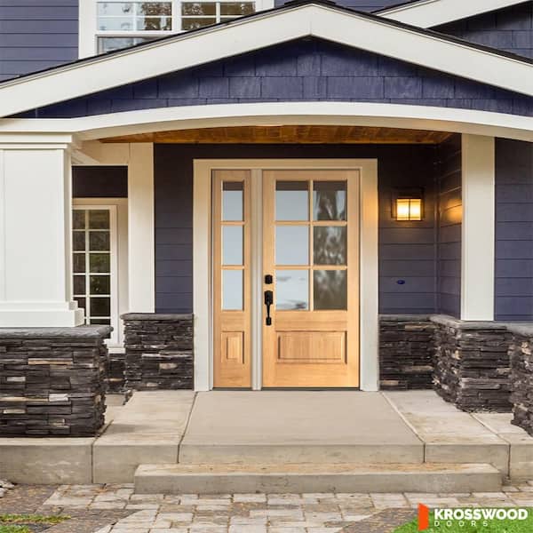 50 in. x 80 in. Farmhouse 3/4 Lite Clear Glass Clear Stain Right-Hand/Inswing Hemlock Prehung Front Door w/LSL