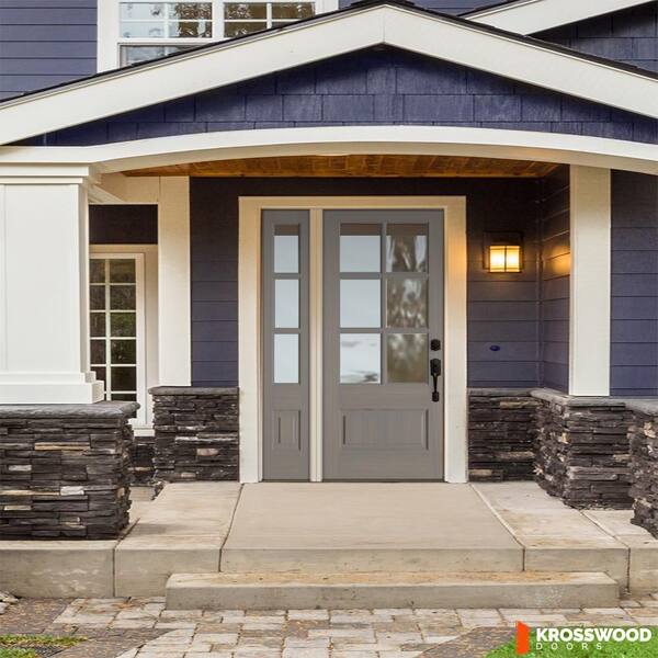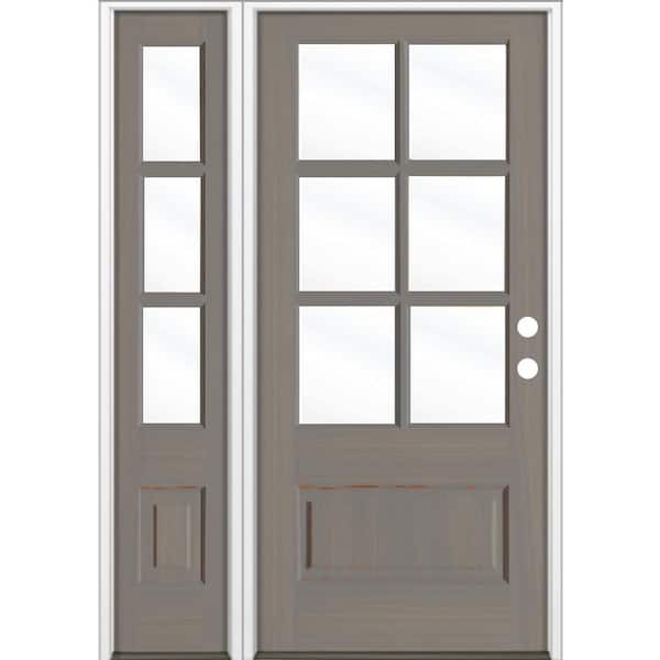 50 in. x 80 in. Farmhouse 3/4 Lite Clear Glass Grey Stain Left-Hand/Inswing Hemlock Prehung Front Door w/LSL
