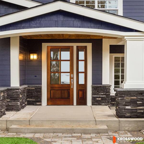 50 in. x 80 in. Farmhouse 3/4 Lite Clear Glass Red Chestnut Stain Left-Hand/Inswing Hemlock Prehung Front Door w/ RSL