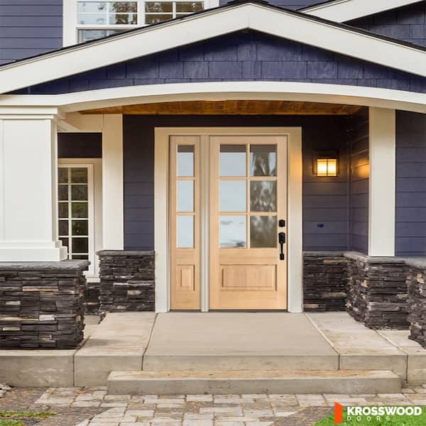 50 in. x 80 in. Farmhouse 3/4 Lite Clear Glass Unfinished Left-Hand/Inswing Hemlock Prehung Front Door w/LSL