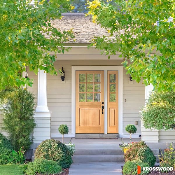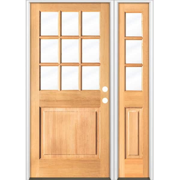 50 in. x 80 in. Farmhouse 9-Lite Clear Glass Left-Hand Clear Stain Hemlock Wood Prehung Front Door w/ RSL
