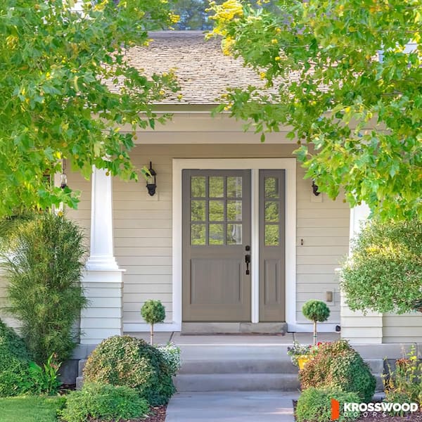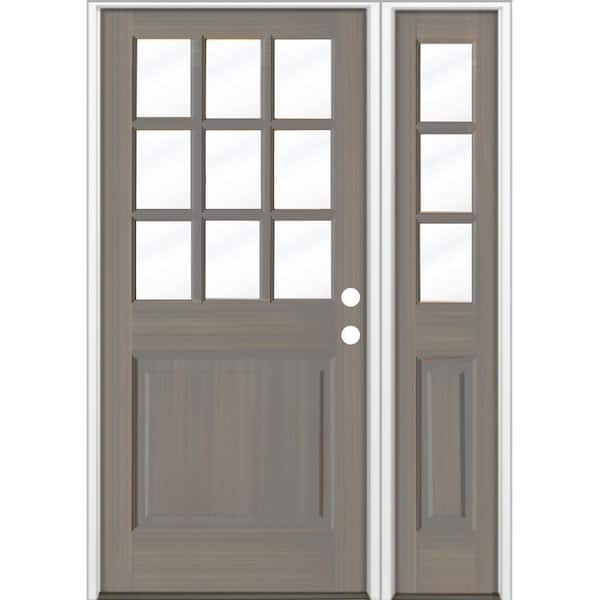 50 in. x 80 in. Farmhouse 9-Lite Clear Glass Left-Hand Grey Stain Hemlock Wood Prehung Front Door w/ RSL