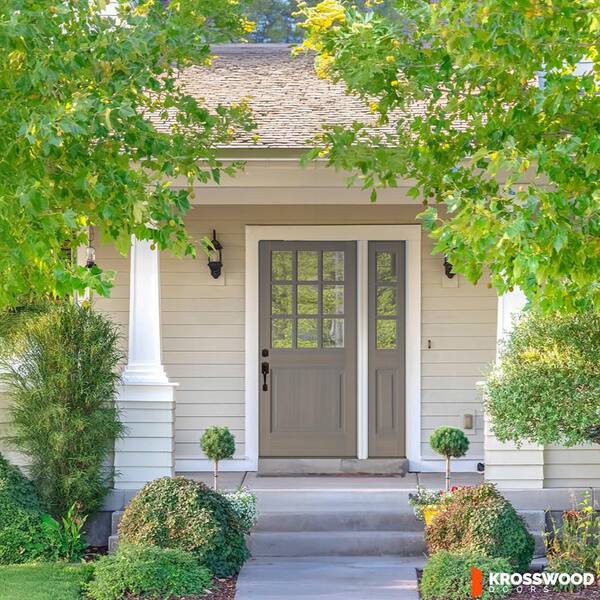50 in. x 80 in. Farmhouse 9-Lite Clear Glass Right-Hand Grey Stain Hemlock Wood Prehung Front Door w/ RSL