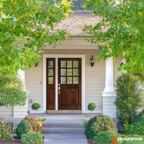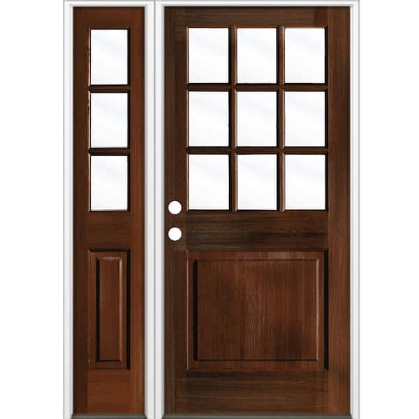 50 in. x 80 in. Farmhouse 9-Lite Clear Glass Right-Hand Red Mahogany Stain Hemlock Wood Prehung Front Door w/ LSL