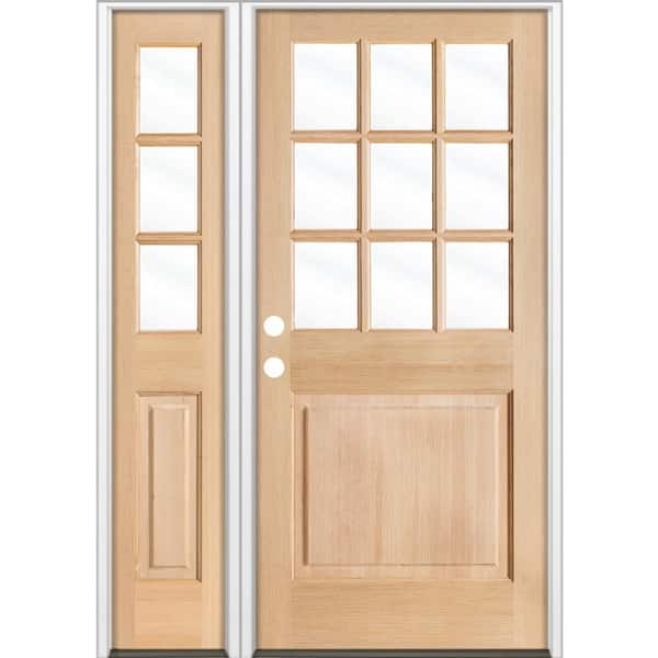 50 in. x 80 in. Farmhouse 9-Lite Clear Glass Right-Hand Unfinished Hemlock Wood Prehung Front Door w/ LSL