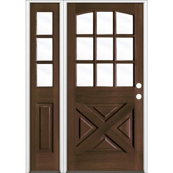 50 in. x 80 in. Farmhouse X Panel LH 1/2 Lite Clear Glass Black Stain Hemlock Prehung Front Door with LSL