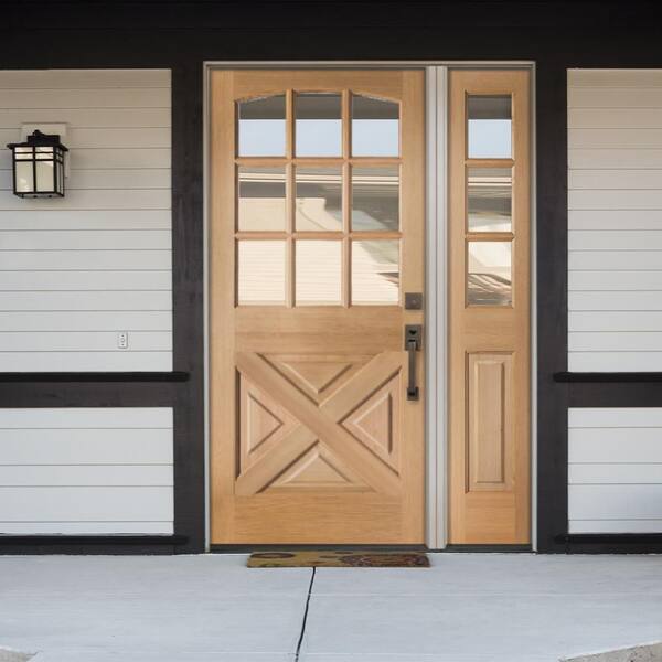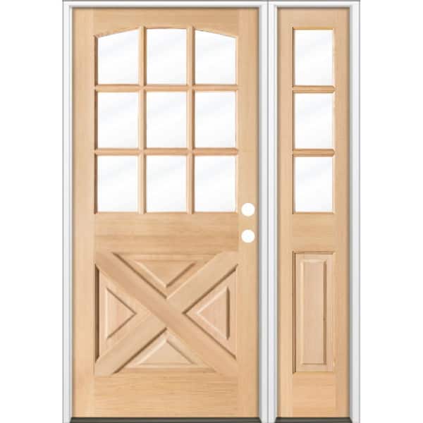 50 in. x 80 in. Farmhouse X Panel LH 1/2 Lite Clear Glass Unfinished Hemlock Wood Prehung Front Door with RSL
