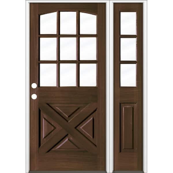 50 in. x 80 in. Farmhouse X Panel RH 1/2 Lite Clear Glass Black Stain Hemlock Wood Prehung Front Door with RSL
