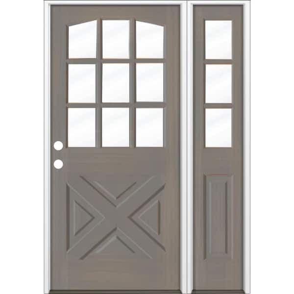 50 in. x 80 in. Farmhouse X Panel RH 1/2 Lite Clear Glass Grey Stain Hemlock Wood Prehung Front Door with RSL