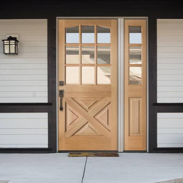 50 in. x 80 in. Farmhouse X Panel RH 1/2 Lite Clear Glass Provincial Stain Hemlock Wood Prehung Front Door with RSL