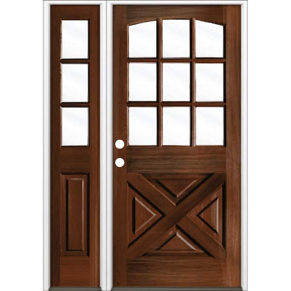 50 in. x 80 in. Farmhouse X Panel RH 1/2 Lite Clear Glass Red Mahogany Stain Hemlock Prehung Front Door with LSL