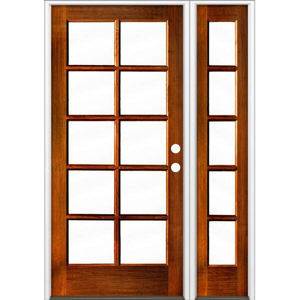 50 in. x 80 in. French LH Full Lite Clear Glass Red Chestnut Stain Hemlock Wood Prehung Front Door with RSL