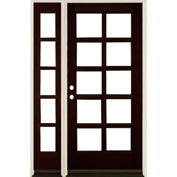 50 in. x 80 in. French LH Full Lite Clear Glass Red Mahogany Stain Hemlock Prehung Front Door with LSL
