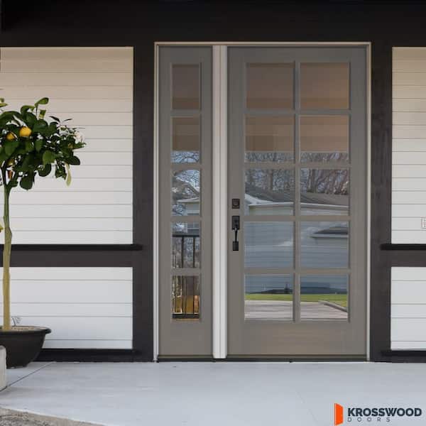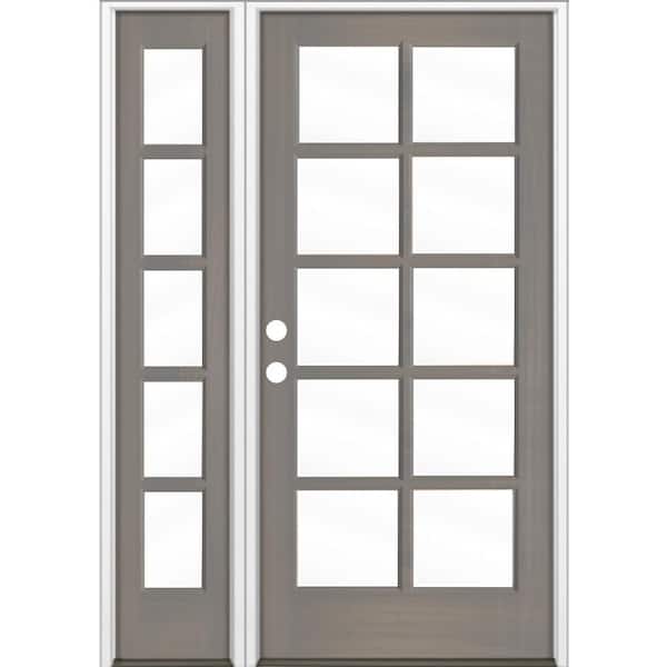 50 in. x 80 in. French RH Full Lite Clear Glass Grey Stain Hemlock Prehung Front Door with LSL