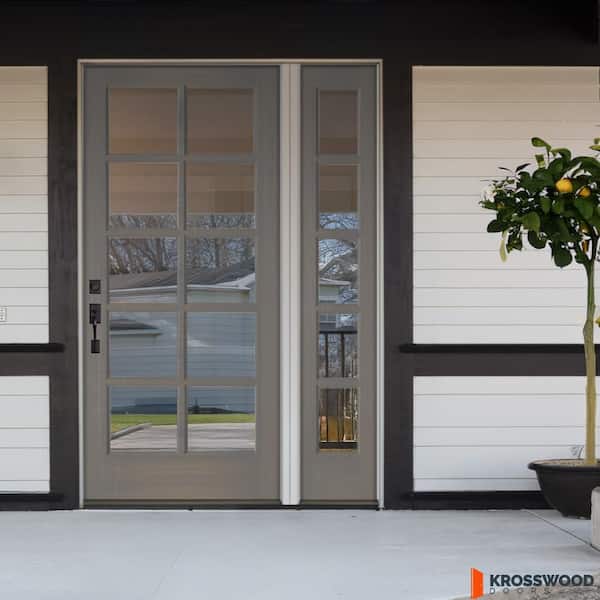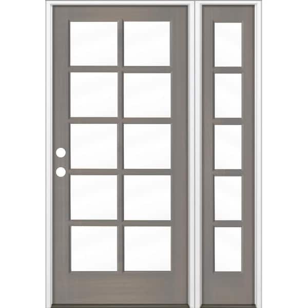 50 in. x 80 in. French RH Full Lite Clear Glass Grey Stain Hemlock Wood Prehung Front Door with RSL
