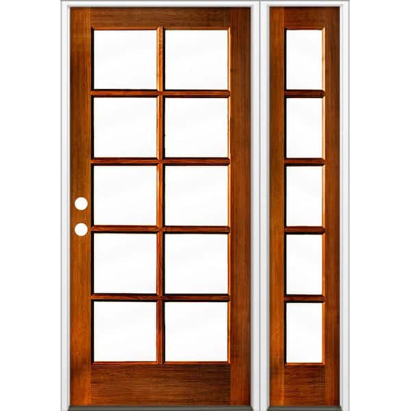 50 in. x 80 in. French RH Full Lite Clear Glass Red Chestnut Stain Hemlock Wood Prehung Front Door with RSL