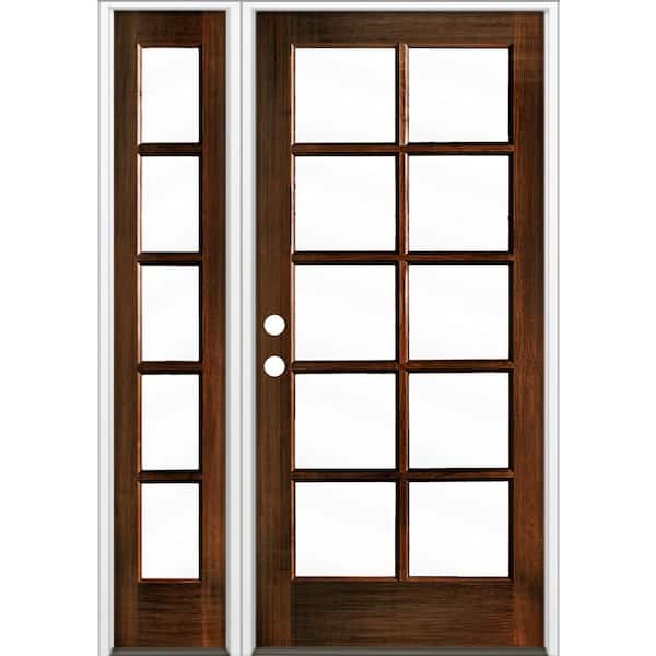 50 in. x 80 in. French RH Full Lite Clear Glass Red Mahogany Stain Hemlock Prehung Front Door with LSL