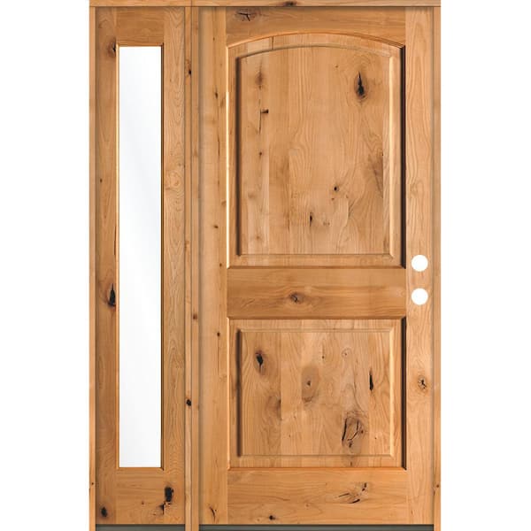50 in. x 80 in. Knotty Alder 2-Panel Left-Hand/Inswing Clear Glass Clear Stain Wood Prehung Front Door w/ Left Sidelite