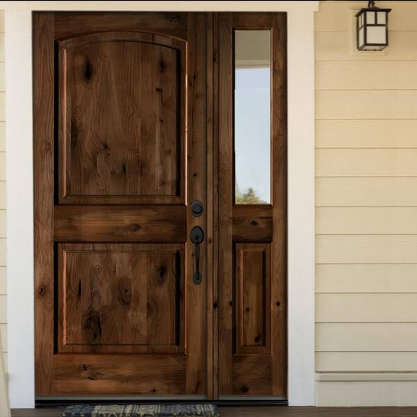 50 in. x 80 in. Knotty Alder 2 Panel Left-Hand/Inswing Clear Glass Provincial Stain Wood Prehung Front Door