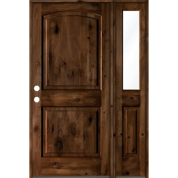 50 in. x 80 in. Knotty Alder 2 Panel Right-Hand/Inswing Clear Glass Provincial Stain Wood Prehung Front Door
