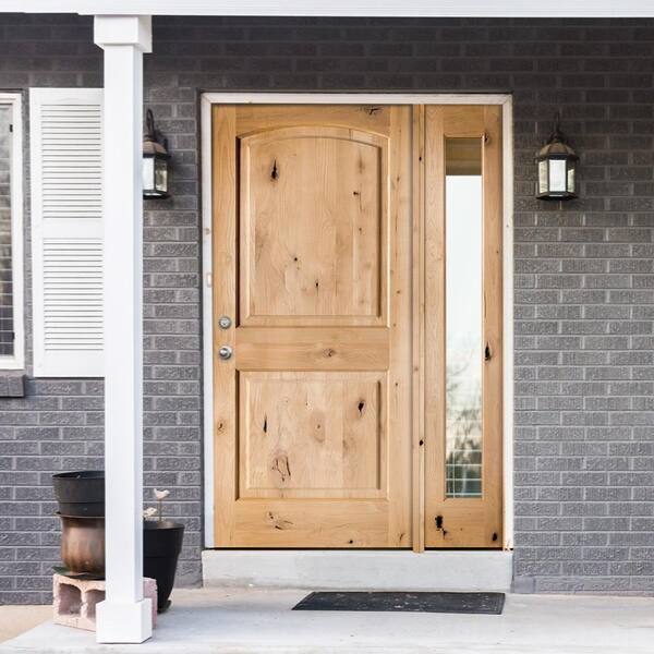 50 in. x 80 in. Knotty Alder 2-Panel Right-Hand/Inswing Clear Glass Red Chestnut Stain Wood Prehung Front Door