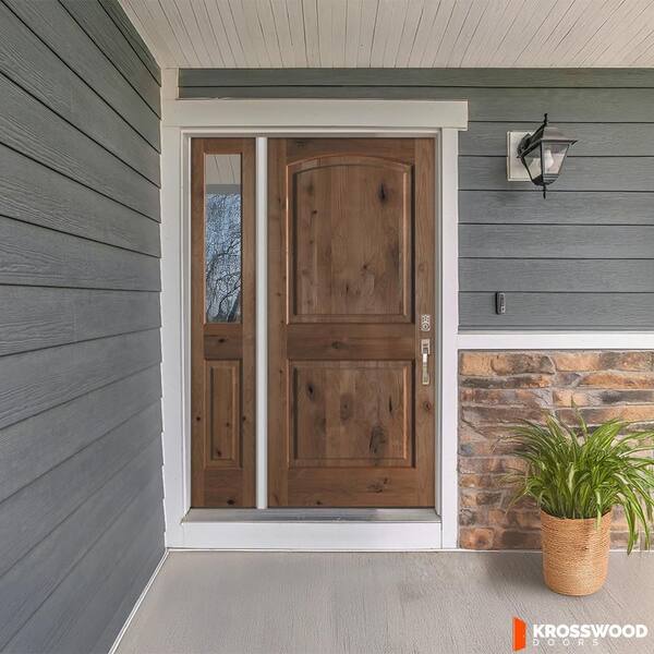 50 in. x 80 in. Knotty Alder 2Panel Arch-Top Left-Hand/Inswing Clear Glass True Black Stain Wood Prehung Front Door LHSL