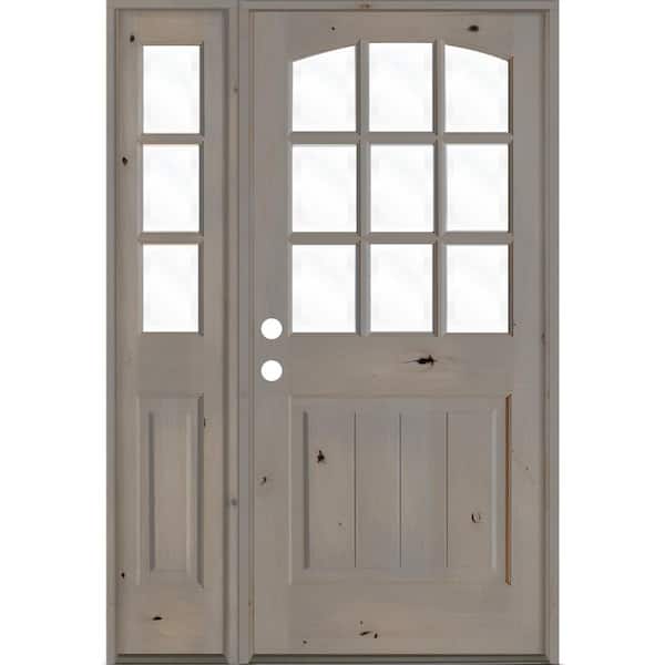 50 in. x 80 in. Knotty Alder Right-Hand/Inswing 9-Lite Clear Glass Grey Stain Wood Prehung Front Door with Left Sidelite