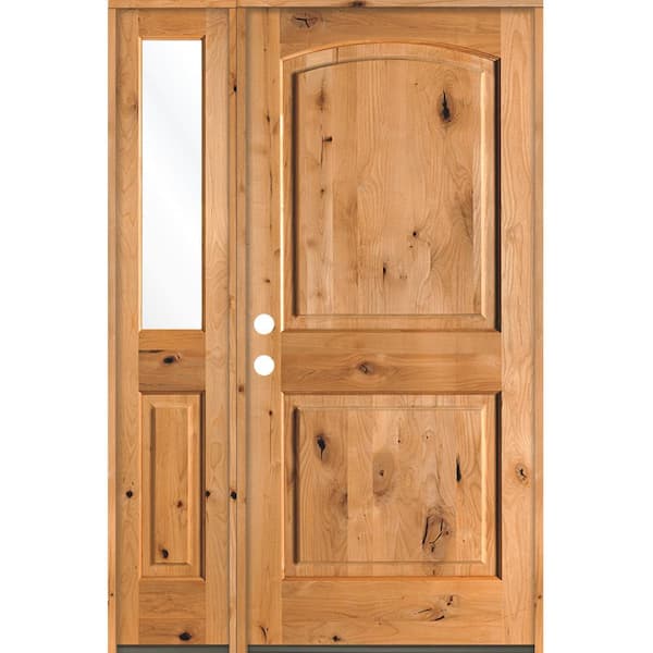 50 in. x 80 in. Knotty Alder Right-Hand/Inswing Clear Glass Clear Stain Wood Prehung Front Door with Left Sidelite