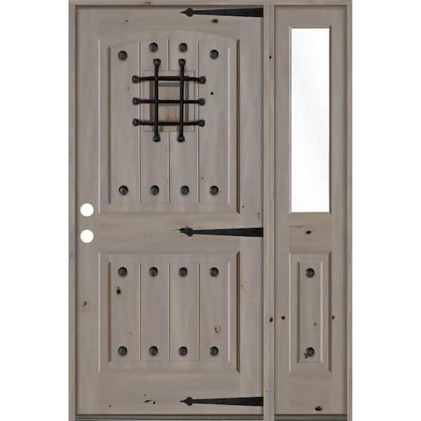 50 in. x 80 in. Mediterranean Knotty Alder Right-Hand/Inswing Clear Glass Grey Stain Wood Prehung Front Door w/RHSL