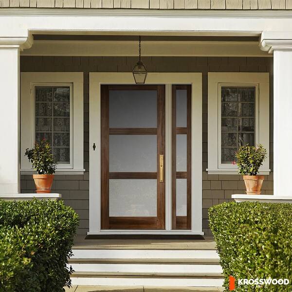 50 in. x 80 in. Modern Hemlock 3-Lite Left-Hand/Inswing Frosted Glass Provincial Stain Wood Prehung Front Door w/RSL