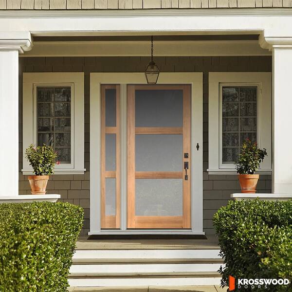 50 in. x 80 in. Modern Hemlock 3-Lite Left-Hand/Inswing Satin Glass Clear Stain Wood Prehung Front Door