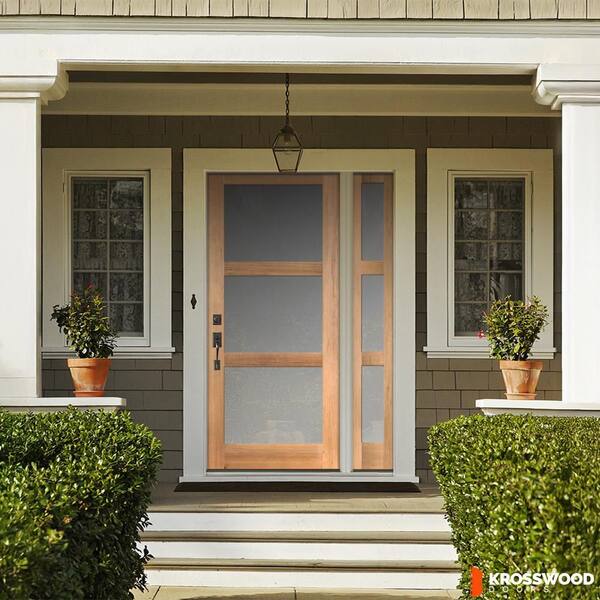 50 in. x 80 in. Modern Hemlock 3-Lite Right-Hand/Inswing Frosted Glass Clear Stain Wood Prehung Front Door w/ RSL