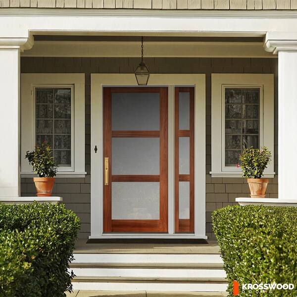 50 in. x 80 in. Modern Hemlock 3-Lite Right-Hand/Inswing Frosted Glass Red Chestnut Stain Wood Prehung Front Door