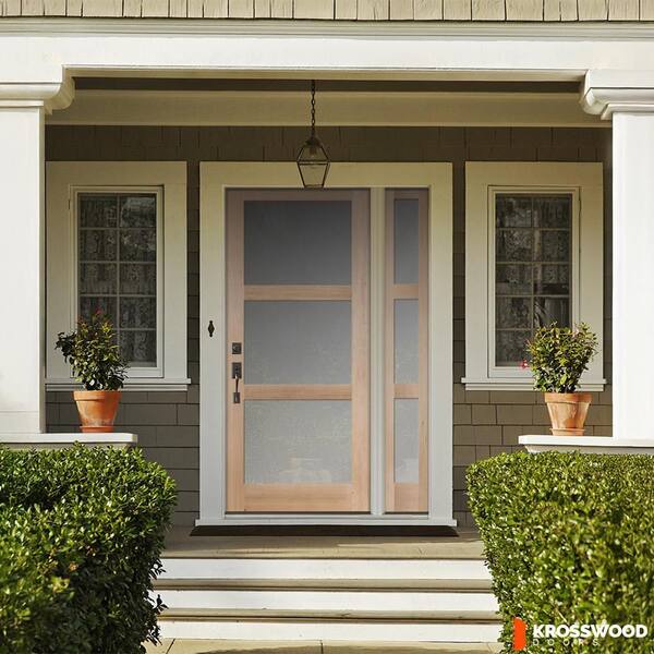50 in. x 80 in. Modern Hemlock 3-Lite Right-Hand/Inswing Frosted Glass Unfinished Wood Prehung Front Door w/ RSL