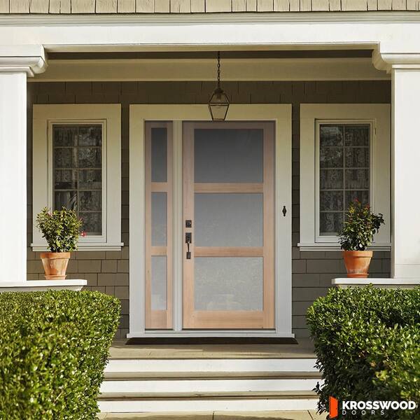 50 in. x 80 in. Modern Hemlock 3-Lite Right-Hand/Inswing Satin Glass Unfinished Wood Prehung Front Door