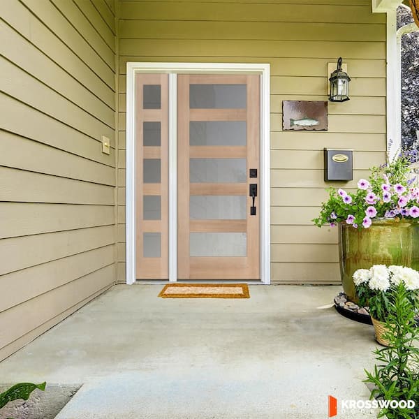 50 in. x 80 in. Modern Hemlock 5-Lite Left-Hand/Inswing Frosted Glass Unfinished Wood Prehung Front Door w/ LSL