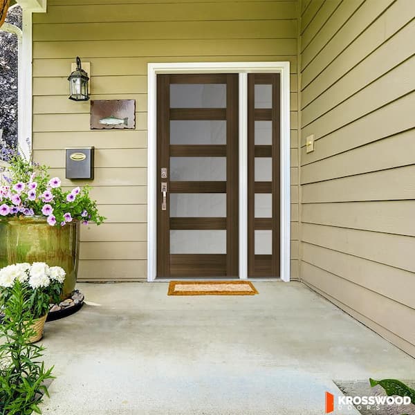 50 in. x 80 in. Modern Hemlock 5-Lite Right-Hand/Inswing Frosted Glass Black Stain Wood Prehung Front Door w/RSL